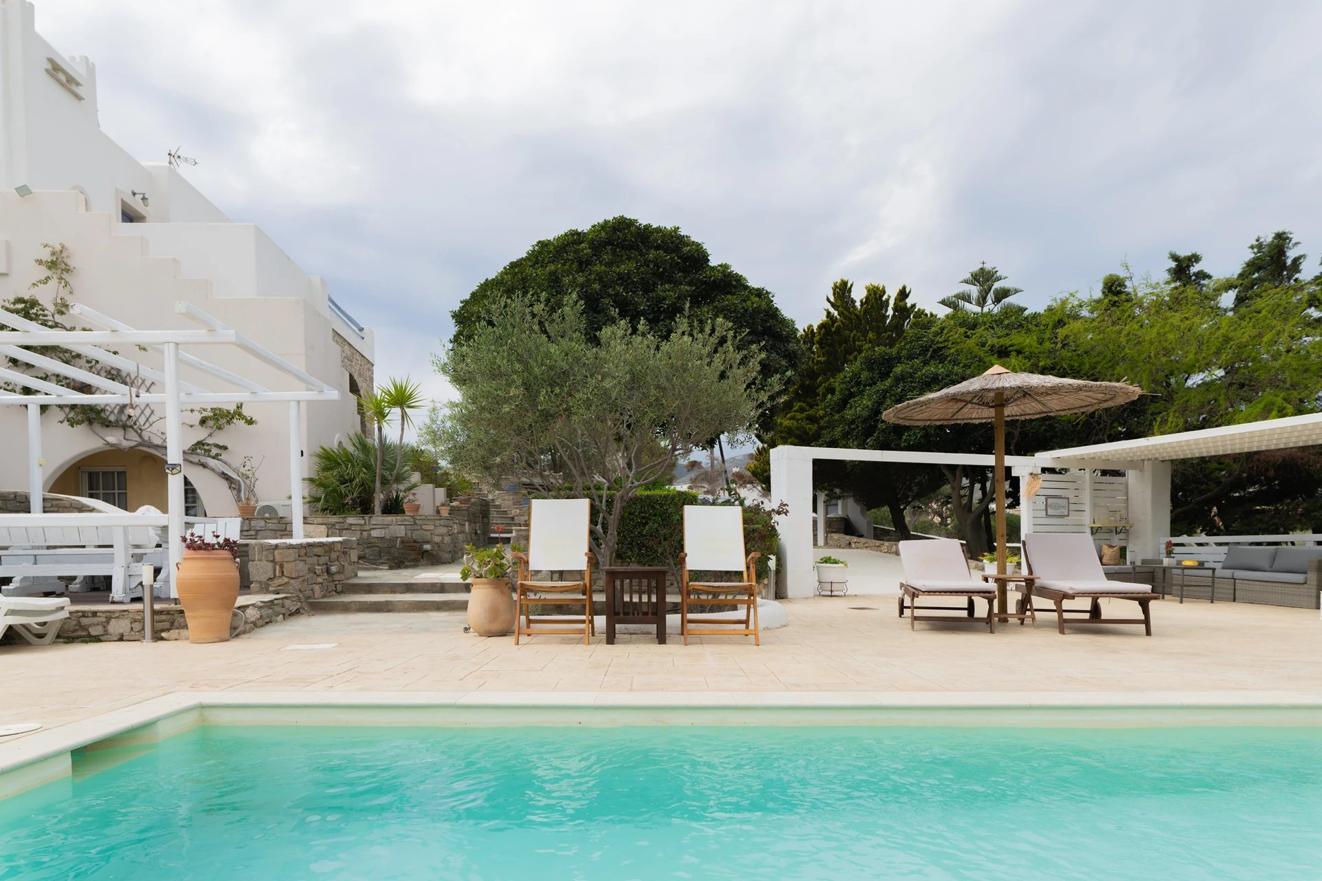 The picturesque fishing village of Naoussa, which has been transformed into the island's entertainment center, is just 12 km away, where you can find many restaurants, traditional taverns, cafes with traditional sweets, bars, clubs, and clothing stores. The port of Parikia is 15 km away. Paros Airport is 16 km away.